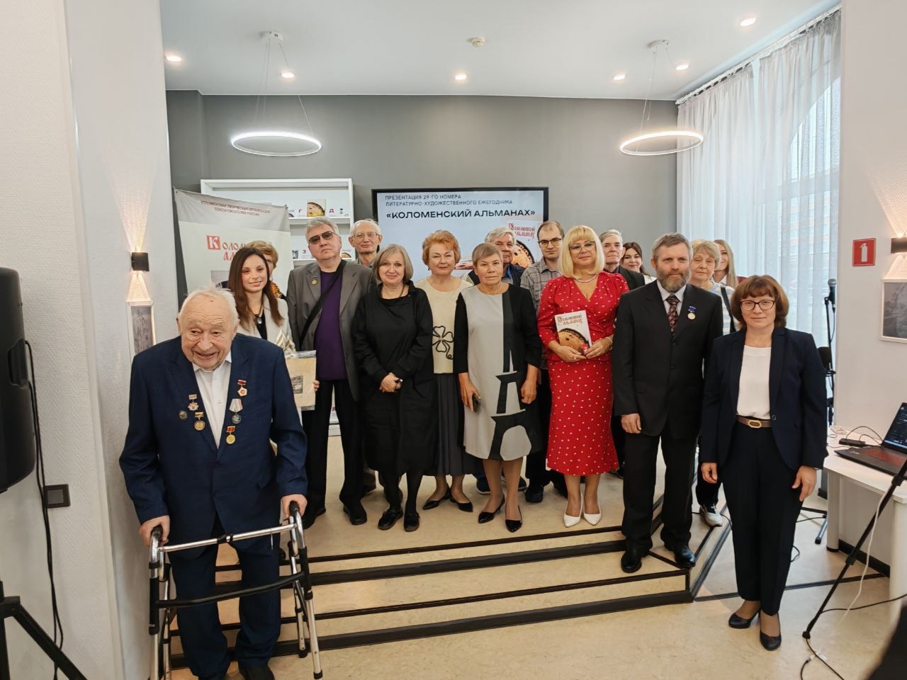 ПРАЗДНИК СО СЛЕЗАМИ НА ГЛАЗАХ 20 сентября 2025 года в Центральной городской библиотеке имени В. В. Королёва г. Коломны состоялась презентация 29 выпуска литературно-художественного издания «Коломенский альманах», посвященного 80-летию Победы нашего народа в Великой Отечественной войне 1941– 1945 гг. На встречу с читателями пришли создатели и авторы ежегодника, многочисленные гости, музыканты Коломенской филармонии. Почётным гостем на презентации был один из авторов новой рубрики «Дети войны» «Коломенского альманаха» – Борис Борисович Бунин, в прошлом году отметивший свой 90-летний юбилей. Борис Борисович Бунин известен многим в Коломне как высококлассный инженер ВНИКТИ, преподаватель Политеха. Кандидат технических наук, настоящий русский интеллигент, потомок известного рода Буниных. он является личностью самых разносторонних интересов: как технических, так и гуманитарных. «Коломенский альманах» в этом году опубликовал его воспоминания, связанные с военным детством, эвакуацией. Из Москвы на презентацию ежегодника приехали постоянные авторы «Коломенского альманаха»: уроженец Коломны известный поэт Григорий Вихров и московский краевед Татьяна Залата. С поздравительным словом перед собравшимися выступила начальник отдела туризма, музейной и библиотечной деятельности Инна Владимировна Рвачёва. Она высоко оценила работу творческого коллектива «Коломенского альманаха» и пожелала изданию новых успехов и долголетия. С тёплым приветственным словом к участникам встречи обратилась заместитель директора МБУ «КГЦБС» Светлана Алексеевна Григорьева. Евгений Ломако, кандидат исторический наук, учёный секретарь музея-заповедника «Коломенский кремль», член Союза писателей России, автор статьи «Народ – победитель», в своём вступительном слове сказал о том, что большинство опубликованных в новом издании материалов составляет памятную летопись военных лет нашей страны и города Коломны, и подчеркнул значимость издания «Коломенского альманаха» для всего города. Ведущие Екатерина Чурюкина и Ольга Павлова познакомили читателей с рубриками нового выпуска ежегодника и их авторами. Издание открывается разделом «ЧАС МУЖЕСТВА», в котором звучат стихи известных поэтов-фронтовиков и стихи коломенских поэтов о войне. Рубрика «ВОЕННАЯ ПРОЗА» представлена в альманахе тремя авторами: Виктором Мельниковым, Анатолием Рахматуллиным и Андреем Румянцевым. Их рассказы написаны сердцем, потому что война так или иначе коснулась их детства. Традиционный раздел «ПОЭЗИЯ» представлен в новом альманахе одиннадцатью авторами. Он открывается подборкой стихов известного коломенского поэта-фронтовика Евгения Кирсанова. С рассказами об отце перед собравшимися выступил поэт Евгений Кирсанов, сын Александра Кирсанова. Он показал фронтовые дневники и фотографии отца. Эта живая память надолго запомнится участникам встречи. Особую признательность хочется выразить несгибаемому поэту нашего времени Юнне Петровне Мориц, согласившейся быть одним из авторов нашего альманаха, а также многоуважаемой Валентине Григорьевне Ерофеевой, редактору газеты «День литературы», поэту, автору подборки стихов «Эпохи хрупчайший разлом». Член Союза писателей России поэт Григорий Вихров в своём выступлении порадовал читателей своими новыми стихами, в которых всег