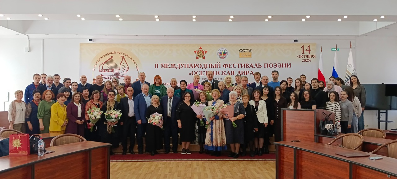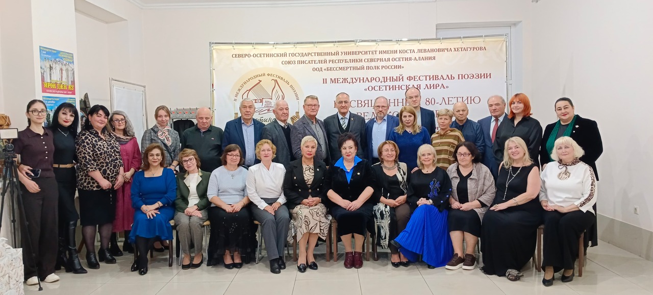 СЕВЕРНАЯ ОСЕТИЯ СЛАВИТСЯ НЕ ТОЛЬКО ПИРОГАМИС 13 по 17 октября 2025 года в Республике Северная Осетия-Алания успешно прошёл Второй Международный фестиваль поэзии «Осетинская лира», посвященный 80-летию Великой Победы. Фестиваль был организован при поддержке Северо-Осетинского отделения Союза писателей России, регионального отделения «Бессмертный полк России», СОГУ им. К.Л. Хетагурова и общественной организации «Иудзинад». Его участников, известных поэтов-переводчиков из многих регионов России и гостью из Индии, владикавказцы по традиции осетинского гостеприимства радушно встретили тремя пирогами. Программа фестиваля была очень насыщенной: состоялись пресс-коференция для СМИ, торжественное собрание в честь 100-летнего юбилея Союза писателей Северной Осетии, выступления на республиканском телевидении и радио, возложение цветов к могилам Коста Хетагурова и Шамиля Джикаева, выезд на родину Коста Хетагурова в селение Нар в Дигорском районе, посещение Литературного музея и музея прославленного полководца Исы Плиева, мемориальных комплексов воинской славы, посвящённых семерым братьям Газдановым, погибшим на полях сражений, и Петру Барбашову, закрывшему грудью амбразуру вражеского дзота. В рамках фестиваля в Северо-Осетинском университете им. К.Л. Хетагурова, в Русском академическом театре им. Е. Вахтангова и в Доме дружбы народов Северной Осетии прошли презентации трёх поэтических сборников – «В живом строю» (переводы на русский язык стихов 47 осетинских поэтов-фронтовиков выполнены группой переводчиков во главе с Ниной Ягодинцевой, книга издана в Москве главным редактором сайта СП России Григорием Шуваловым), «И скорбь, и ярость, и любовь…» (стихи в переводе на русский язык выдающегося осетинского поэта и учёного Шамиля Джикаева), «Отец и сын» (стихи народного поэта Дагестана Магомеда Ахмедова и его сына Мурада Ахмедова переведены на осетинский язык Залиной Басиевой, Валерием Цариевым и Татьяной Плиевой) и сборника сочинений школьников об участниках Великой Отечественной войны. В подготовке сборника Шамиля Джикаева приняли участие ведущие современные переводчики: Юрий Щербаков, Валерий Латынин, Марина Ахмедова-Колюбакина, Нина Попова, Андрей Расторгуев, Нина Ягодинцева, Наталья Куличенко, Геннадий Калашников, Анна Токарева, Наталья Тимофеева, Миясат Муслимова и другие. Они были награждены председателем правления Северо-Осетинского отделения Союза писателей России Борисом Хозиевым медалью имени прославленного осетинского поэта-переводчика Григория Плиева. В свою очередь заместители ответственного секретаря Союза писателей России Валерий Латынин и Нина Попова, поздравляя осетинских коллег со 100-летним юбилеем писательского сообщества РСО-Алания и 2-м фестивалем «Осетинская лира», наградили организаторов поэтического форума Залину Басиеву, Валерия Цариева и Алана Огоева медалями им. Василия Шукшина и «Сказителю Руси – за заслуги», а ряд активно работающих писателей и попечителей фестиваля – Почётными грамотами Союза писателей России. Приветственные адреса писателям Северной Осетии прислали помощник Президента России, 1-й секретарь Союза писателей России Владимир Мединский и главный редактор «Литературной газеты» Максим Замшев. Награды и подарки были вручены и руководителями соседних республиканских о