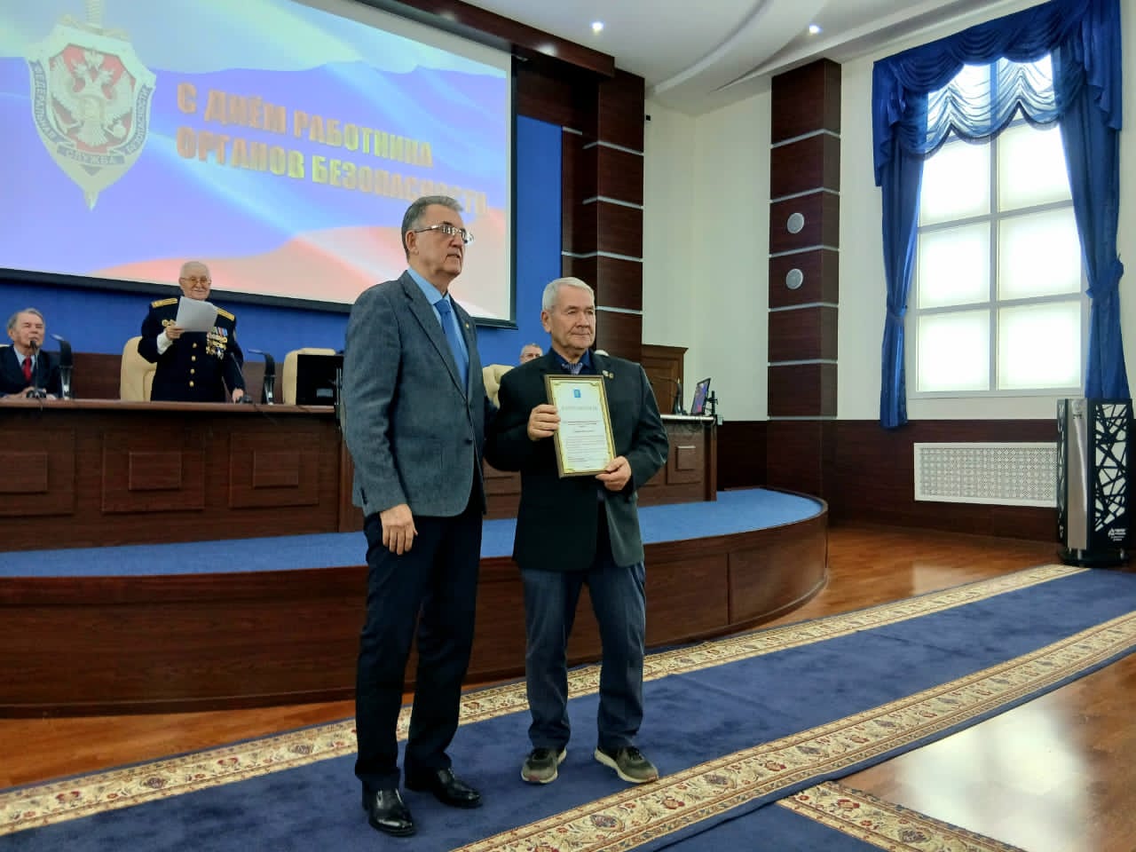За активную общественную работу и в связи с профессиональным праздником - Днём работника органов безопасности Российской Федерации, который отмечается 20 декабря.