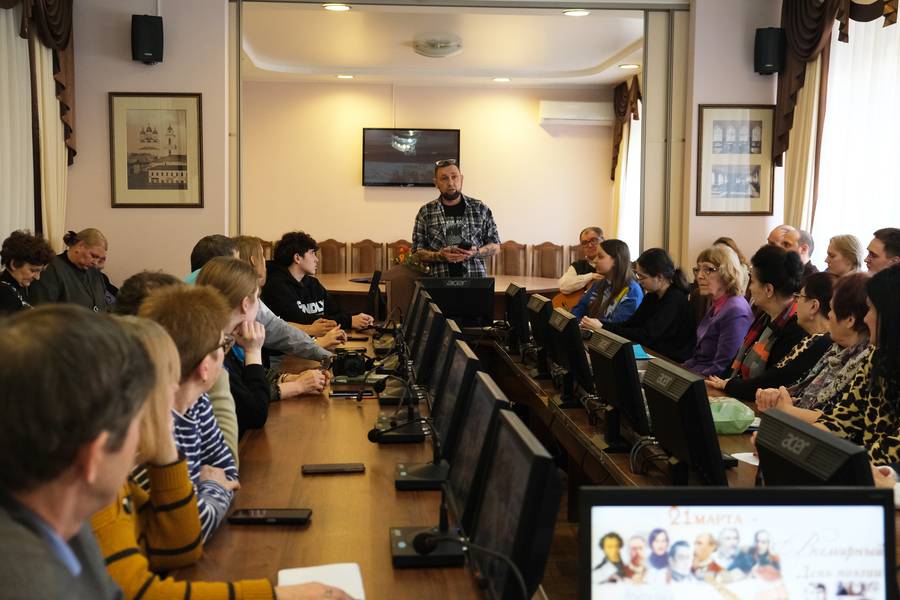 ВСЕМИРНЫЙ ДЕНЬ ПОЭЗИИ В АСТРАХАНИ Астраханское региональное отделение Союза писателей России провело в областной научной библиотеке имени Н.К.Крупской литературно-музыкальный вечер, посвящённый Всемирному дню поэзии. На нём выступили астраханские поэты, члены Союза писателей России Юрий Щербаков, Борис Свердлов, Ольга Маркова, Олег Таланов, Ольга Гребенщикова, Алексей Казанцев, Сергей Фёдоров, Галина Николаева, участники литературной студии «Тамариск» Наталья Коровникова и Марина Маркова. Песни на стихи Сергея Золотова, Ольги Марковой, Олега Таланова, Бориса Свердлова исполнили барды Александра Костина, Станислав Малов, Иван Ращупкин. Не обошлось и без музыкальных сочинений искусственного интеллекта, созданных на стихи Галины Николаевой и Бориса Свердлова. Слушателями были студенты колледжа культуры и любители поэзии. |