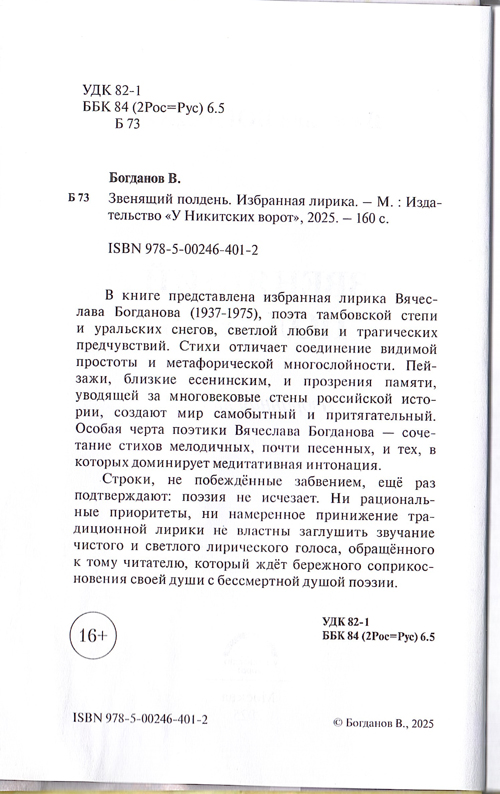 поэтики Вячеслава Богданова (и всей русской классической поэзии). С Никитиным родство наиболее заметно в медитативной лирике. Есть у них и биографическое