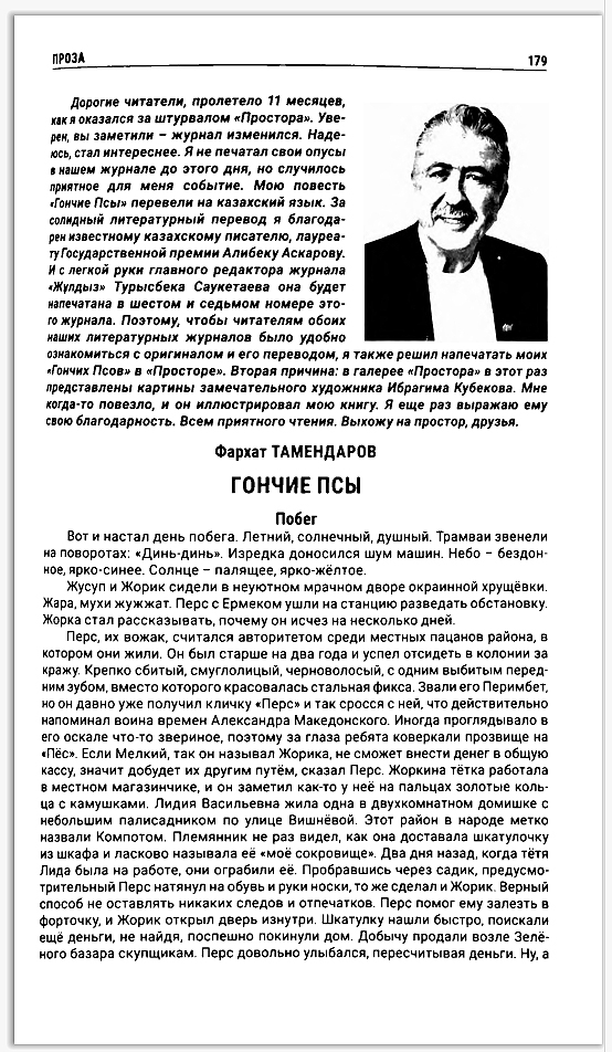 Вот что пишет Фархат Тамендаров в небольшом предисловии к своей повести: ««Я не печатал свои опусы в нашем журнале до этого дня, но случилось приятное для меня событие. Мою повесть «Гончие Псы» перевели на казахский язык. За солидный литературный перевод я благодарен известному казахскому писателю, лауреату Государственной премии Алибеку Аскарову». Оказывается, повесть «Гончие псы» была написана на русском языке, переведена с русского на казахский, ее не следовало переносить из одной номинации в другую номинацию. Но Русскому Пен-центру так хотелось наградить своего «брата», что решил обмануть и себя и автора, и всю общественность, при этом подставив известного казахского писателя Алибека Аскарова, превратив его в переводчика произведения на русский язык. Оргкомитет и жюри, видимо, решили, что в этой номинации соперников Тамендарову не будет или будет меньше. Соперники были, настоящие, сильные, достойные, но они не являются членами пен-центра, их даже не позвали на вручение. К примеру, тот самый Арбен Кардаш с переводом на русский язык (с лезгинского) своей книги «Чандар – дерево жизни», которого, также для отвода внимания, отметили почетным дипломом. Его никто не уведомил, что он награжден дипломом, и его не пригласили на награждение. Возникает еще один острый вопрос к Борису Евсееву, членам оргкомитета, председателю жюри и его членам: а почему премию дали Тамендарову, а не переводчику Аскарову, премия ведь предназначалась для переводчиков произведений, достойных для номинации «Бесценное достояние»? Здесь тоже евсеевцы разоблачили самих себя. Еще факт их собственного разоблачения: электронные версии номеров журнала «Простор» за 2024 год были в открытом доступе, но после награждения лауреатов архив за этот год благополучно удален из Интернета. Автор «Гончих псов» чего-то испугался? Или ему посоветовали сделать это из Русского Пен-центра? Что бы там ни было, Русский Пен-Центр не наградил Тамендарова, а наказал этой премией. Другой бы честный и уважающий писатель ни за что не пошел бы на такой подлог. Совет Тамендарову: отдайте денежный эквивалент премии Алибеку Аскарову, имя которого было использовано не по назначению – за моральный ущерб со стороны вступивших в сговор. Увы, честных литературных премий в России пока нет. Есть блат. А вот что сказал великий Искандер про это явление: «Блат – интимное мошенничество». |