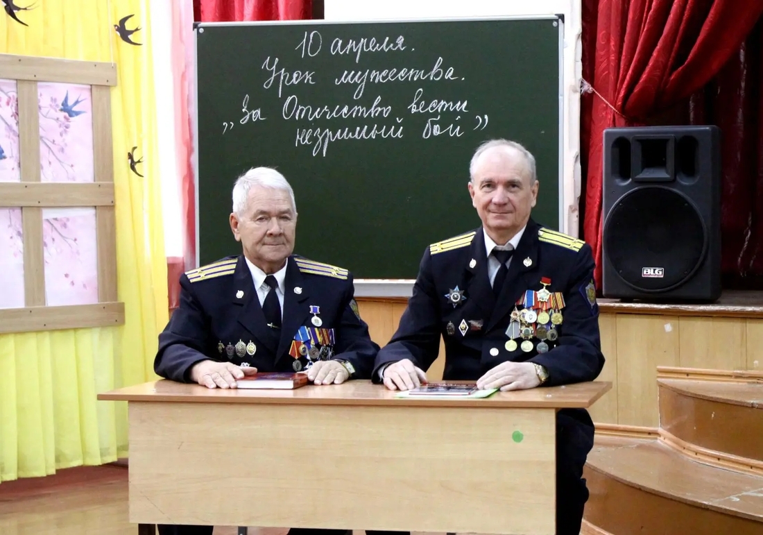 В рамках Урока мужества состоялась интересная и познавательная встреча учащихся старших классов средней школы №33 имени известной астраханской поэтессы Нинель Мордовиной с ветеранами органов безопасности и литераторами. Были приглашены члены Совета ветеранов Управления ФСБ России по Астраханской области подполковник Ю.Ф. Космачёв и подполковник, член Союза писателей России А.А. Макаров. Тема Урока мужества - «За Отечество вести незримый бой».